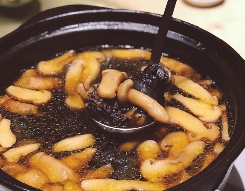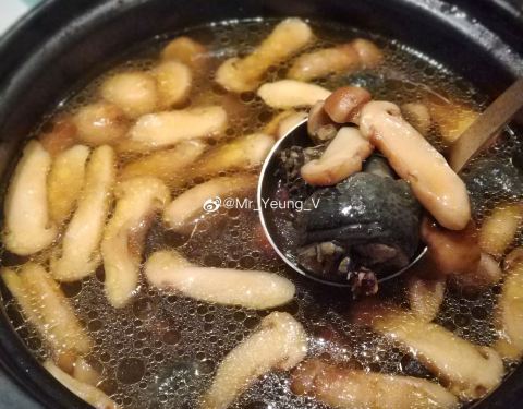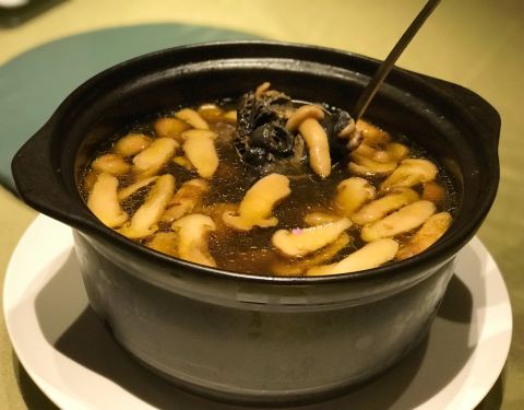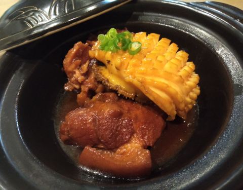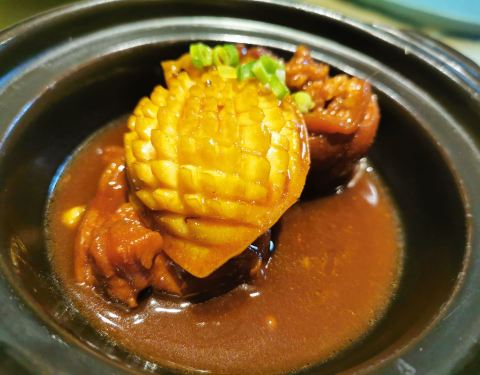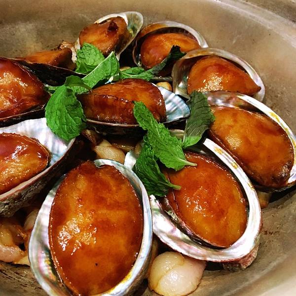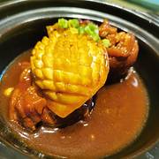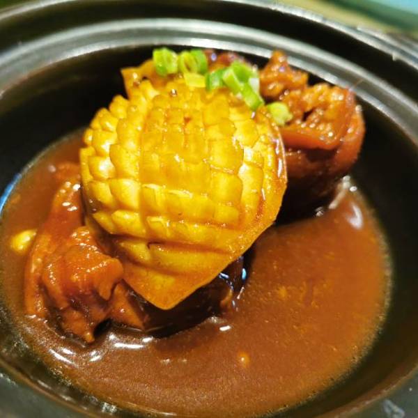 |猪脚焖大连鲍^鲍鱼和猪脚的结合,这道菜适合加一碗白米饭,非常下饭!鲍鱼的纹路处理得有点美丽