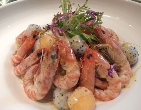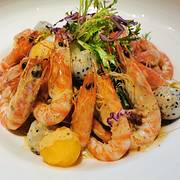 |斑节虾蔬菜沙拉^胡麻酱的沙拉永远是我的最爱!点睛之笔是竟然带有点芥末酱!最近的我狂爱芥末!斑节虾也很贴心的都剥好了~还有各种蔬菜水果