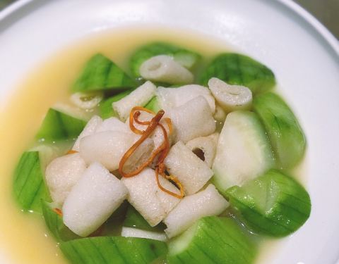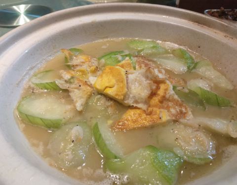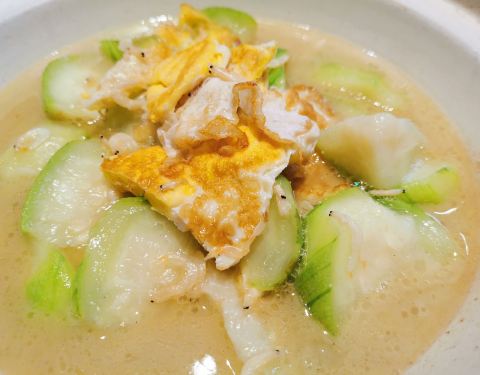 |蛋饺煮丝瓜煲^很适合夏天的一道菜了~汤汁都可以直接喝的那种,咸甜咸甜的