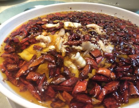 |藤椒鲨鱼^看起来火辣辣的其实不会很辣,藤椒的麻味比较重!鱼肉很嫩很香~