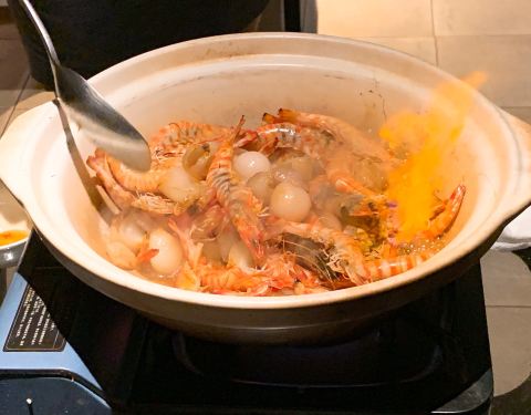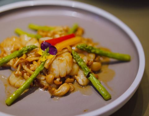 最喜欢的菜有好多个!白切雪花牛肉食材优秀,刀功到位,搭配的酱料也很合适,有一种最爱的油葱的感觉。火焰焗斑节虾,小姐姐当面演示,那种喷薄而出的食欲欲罢不能,同样的优秀食材,刚刚好的火候,入口Q弹的斑节虾肉是绝对的享受!松茸炖瓢鸡汤,贵有贵的道理,还想再来一锅奈何钱包不够鼓。主食猪油捞面线是特别的惊喜,看似简单但见功夫,特别好吃!另外、老虎斑、荔浦芋头、旺螺、绿笋…都很不错! 应该说商务接待,家庭聚餐都很适合的品质餐厅,私密性好服务到位,特别的推荐!