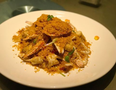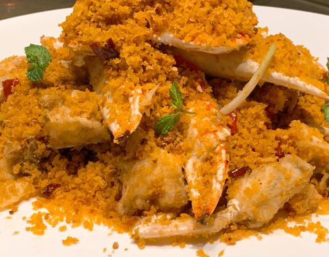 📍地点:湖滨南路88号📍店名:「潮宫」📍类型:福建菜📍个人推荐:避风塘炒蟹,红菇米粉,沙螺炖黄翅鱼汤 📍一点碎碎念:一家开了蛮久的私房菜馆,很适合商务宴请或者家庭聚餐。这家居然有很复古的猪油拌饭,个人推荐拌上避风塘炒蟹里的葱头酥,真的是又香又脆,油润适口,好吃程度提升至少50%!!沙螺炖黄翅鱼汤一口下去就让你知道什么叫大自然馈赠的鲜甜,一口一口喝的根本停不下来。最近有团购套餐,所以感觉平时朋友几个一起聚聚也蛮优惠的。