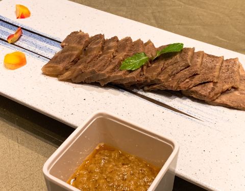 超级好吃! 「白切牛肉」用的部位是牛上脑(肩颈脊骨两侧的牛肉)必蘸秘制普宁酱,口感绵软,入口即化
