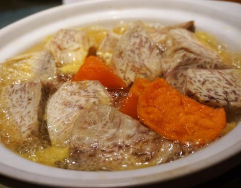 潮宫位于厦门繁华闹市中,独取一隅宁静。走过木刻【潮宫】石门,一入庭院竹子布遍中式雕花木窗前,尽显清幽。古韵包厢私密性极好,沙发、茶几、电视等配套,每间包厢都标配一个服务员。无论是宴请还是聚会都是极佳的选择。 猪油捞饭,复古的铝制食盒盛着香喷喷的白米饭猪油渣放入其中蒸熟。简单又美味。 避风塘炒蟹,酥脆的红花蟹壳轻轻一掰,鲜嫩的蟹肉就能脱壳而出。这道菜的精髓就是甘口焦香,脆而不糊的避风塘。好吃到连壳都要舔一舔。 沙螺炖黄翅鱼汤,沙螺与黄翅鱼二者结合竟不见一丝一毫的鱼腥味,黄翅鱼肉嫩滑,汤头清甜爽口,就连不喜鱼汤的我都喝了好几碗~ 黑椒焗九肚鱼,九肚鱼的学名叫龙头鱼,属狗母鱼科,又名丝丁鱼、豆腐鱼。是一种身体柔软、只有一根鱼骨无小刺的鱼家里常用来裹粉油炸。但这次在潮宫竟是砂锅煲焗九肚鱼,置于底部的蒜头去腥,嫩如豆腐的鱼肉更是入口即化,味极鲜美。 【服务】包厢内配有专门服务员♂️盛汤换碟很及时,服务很贴心。