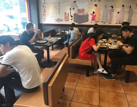 红荔村肠粉王,是一家连锁的肠粉店,店面虽然不是很大,但是里面的桌椅,用具都摆的很整齐,看起来很舒服。 他家没有包房,大厅最多可以座150人左右,还有靠窗的位子,坐在这里还可以看到窗外的景色,感觉真的很不错。 他家的猪肉粉、牛肉粉、叉烧粉、点击率都非常高。