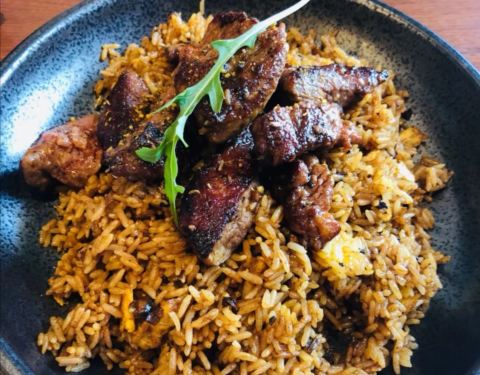 招牌牛肉野菌饭,每次来都会点,牛肉粒不是一般的大,厚实大颗,香嫩,超级划算,野菌炒饭很香。 鸡翅,外焦里嫩,味道不错,很喜欢。 黑松露面包,一口咬下去有黑松露,特别好吃。