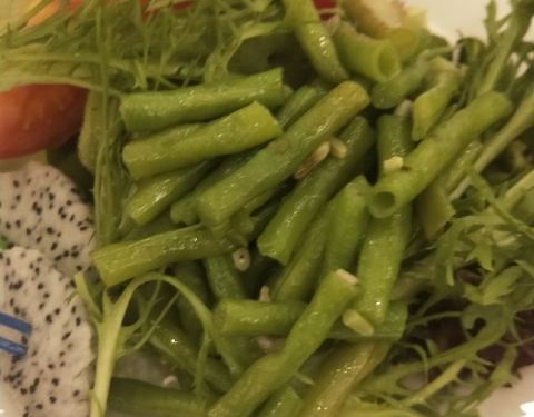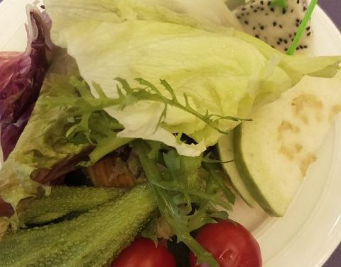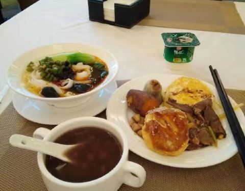 自助餐还不错吧,有牛奶喝也有蔬菜吃。蔬菜凉菜比较多,热菜的话种类就少点了。早上是自助餐