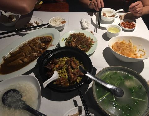 先说说店里的环境,装修很古典,好多瓷器,大厅中间是一个木质门厅,可以坐在里面吃饭。我们点的笋肉,豆皮炖肉,一个大碗炒饭。 2017-07-14 13:11来自携程 网友