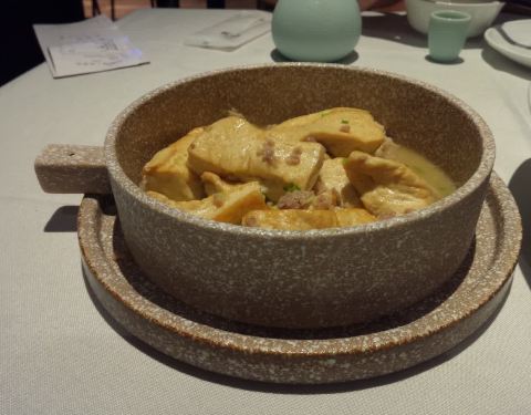 先说说店里的环境,装修很古典,好多瓷器,大厅中间是一个木质门厅,可以坐在里面吃饭。我们点的笋肉,豆皮炖肉,一个大碗炒饭。