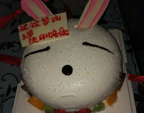 这次是给宝宝过生日,宝贝自己选的呢!很可爱的一只兔子不过这次没有送数字蜡烛……