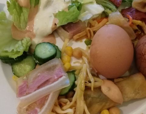 宁波阳光豪生大酒店的自助餐厅,菜品不算多,基本和价位相匹配,相比西式菜品,中式菜肴偏少,刺参还是很新鲜的,帝王蟹和烤生蚝限量供应,甜品方面巧克力布朗尼味道不错。