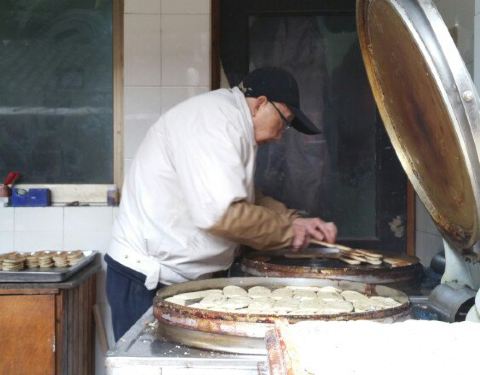 一早一位老人就在做袜底酥,一张张不紧不慢的翻烤,要买东西就要等他翻完饼。新出锅的袜底酥咸香酥脆,非常可口,价格也便宜。那位做饼的老人真可说是同里的一道风景。