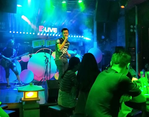 - 外面是歌手清唱的,有点像茶馆,也没有最低消费,要早去才有位子