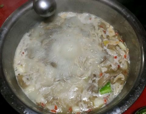 煲汤的罐子是特别制作的紫砂罐,煲出来的汤特别雪白鲜美味道很浓郁好喝。
