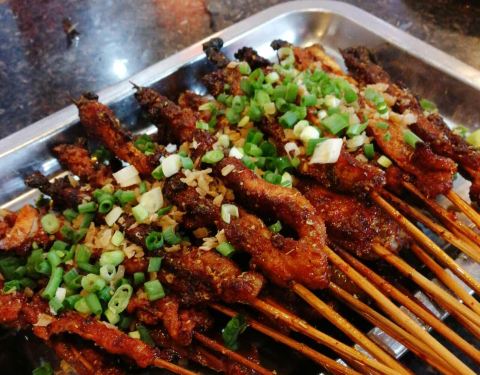 有卤菜,有小吃,一般就吃点抄手和卤的大鸡爪。位置很好找,在一个十字路口上,有烧烤