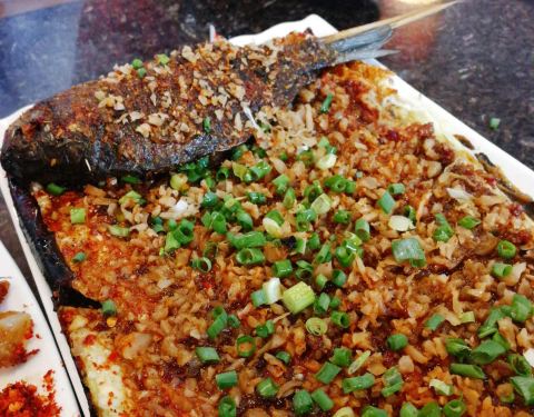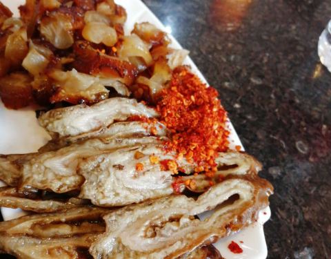 一家主打抄手的中餐馆,点了鲫鱼汤抄手,怪味抄手,干红油抄手,海味抄手四种。抄手里面算是怪味抄手最好吃,海味和辣味都融合到了抄手里面。豆鼓鲫鱼非常好吃,入味。