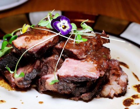 菜品种类不多,主要就是吃肉,M11的和牛的火候掌握得非常好,三分熟,配上几种酱料,我还是使用香辣面更多。低温牛肋骨不使用酱汁体现出原汁原味,还有个很软烂的酱烧牛脸很有特色,算是中西结合方式。20年意大利...