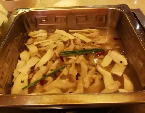 竹珍锅有竹荪,划算,菌类锅也很好吃,如果有菌菇拼盘就好了,两个人比较适合吃拼盘。兔肉一如既往的鲜嫩,好吃。送的水果也不错,挺新鲜的。虾滑还算嫩呢。