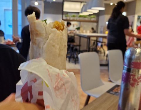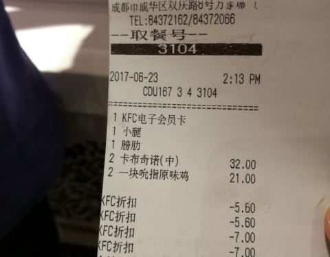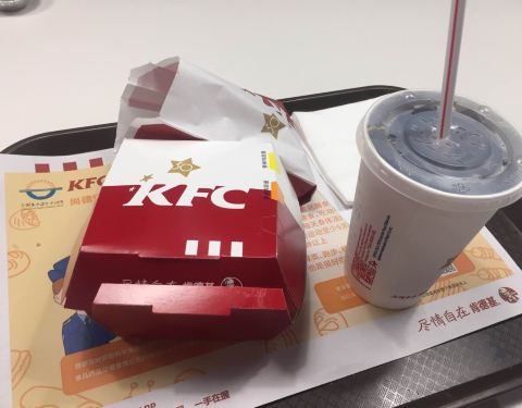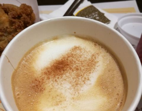 不知道为什么吮指原味鸡总感觉有点偏咸,卡布基诺感觉没有拿铁好喝。这家店生意很好,服务员有点忙不过来