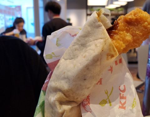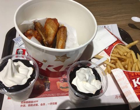 自从有了汉堡王,感觉就很少来肯德基之类了,当然本来现在快餐也吃得比较少了。一般现在来这种快餐店都不是为了吃正餐,只是买零食香香嘴而已,有时候是买一杯新地,有时候买对儿鸡翅。奥尔良烤鸡翅说来味道还是不错的,不过四川人嘛,记得要辣椒面。