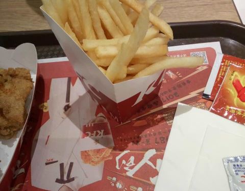 万象城的这家肯德基,一到周末就人满为患,根本没得位置坐,也不晓得平时是不是也是这样,还好这里有自助点餐,但取餐还是需要排队等。喜欢这里的鸡腿汉堡,再撒点海椒面儿,简直是绝配,还是看个人口味哈,喜欢清淡的就不要学我了。