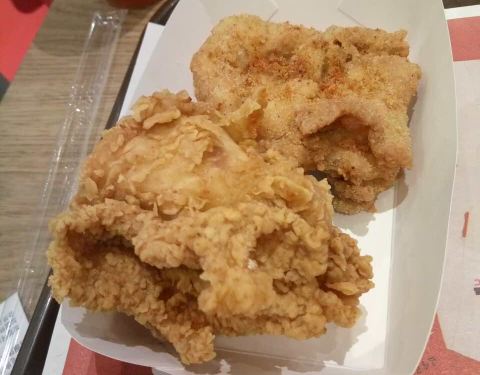 最近小朋友说的想吃KFC了,正好宇宙行建设银行送了一张50元的券,带小朋友到万象城玩的时候顺便就吃了。这家在万象城负一楼星巴克隔壁,饭点人很多。排队点餐,服务员态度很好,很有耐心的叫用会员卡里面的积分兑...最近小朋友说的想吃KFC了,正好宇宙行建设银行送了一张50元的券,带小朋友到万象城玩的时候顺便就吃了。这家在万象城负一楼星巴克隔壁,饭点人很多。排队点餐,服务员态度很好,很有耐心的叫用会员卡里面的积分兑换加一元换奥尔良烤翅买一送一券,点了小朋友爱吃的奥尔良烤翅,奥尔良鸡腿堡,薯条,蛋挞,还点了一个小龙虾汉堡,这个汉堡非常好吃,绝对值得打CALL。