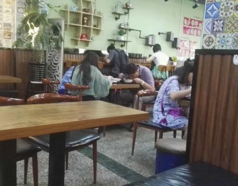 吃饭的人好多啊,是不是刚刚好踩到吃饭的点了啊,还是说这家店生意好呢?