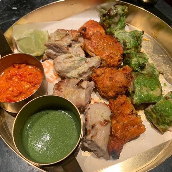 口味算是很清淡的印度菜,所有的味道都不突出,但也并不是不好吃,只是不够出众罢了。 三色烤鸡挺不错的,一次尝到3种味道,配上2种蘸料和柠檬,其实有很多的口味组合。 黄油饼算是印度菜的灵魂,这家的饼还是不...
