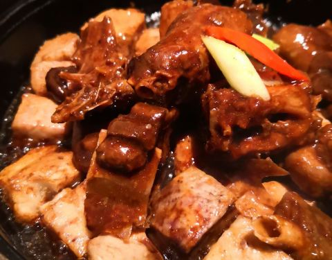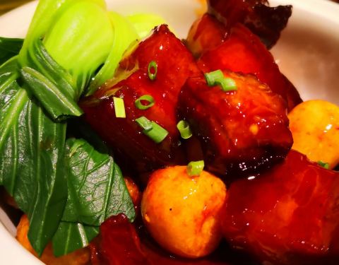 给李老师补身体系列 离中医学院不远,输完液就来了。 鱼片和红烧肉是我给李老师点的,大闸蟹搞特价是李老师馋的很不能吃,就只有看到我吃的哈哈哈。 红烧肉我觉得简直是五星好评,肥瘦相间,有弹性,虽然看到有点肥,但是进嘴真的是肥而不腻哦,赶快给我来一碗白米饭,油脂和淀粉的融合才是我最爱的啊。。。红烧肉里面搭配了青菜和虎皮鹌鹑蛋,鹌鹑蛋先煎过,裹上红烧肉上的酱汁也是很棒啊。 大闸蟹是李老师点的,只有我能吃,在他面前把蟹大卸八块,闪耀的蟹黄,鲜嫩的蟹肉欲罢不能,在李老师的羡慕的眼神下吃的干净。 麻辣鱼片是他们家的招牌,相对来说刺多了些,而且一定要多放一下吃才更入味哦。