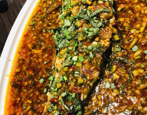 随和家宴馆的出品真的超出意料,无论是装盘还是口味都属于很不错,挑不出毛病,我最喜欢其中三道菜,油沁白条(翘壳鱼)鲜美肉质有弹性;芝麻土鸡,皮酥且香浓;凉菜的浇汁的芥兰丝,口感与口味俱佳。