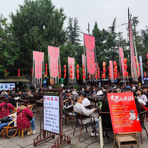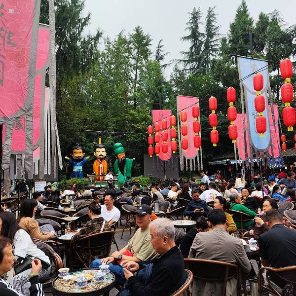 这边就是吃吃喝喝一条街,很多地方都可以喝茶,这边超级多的人喝茶,再就是各种成都美食成都小吃,特别棒。推荐大家来体验吧。