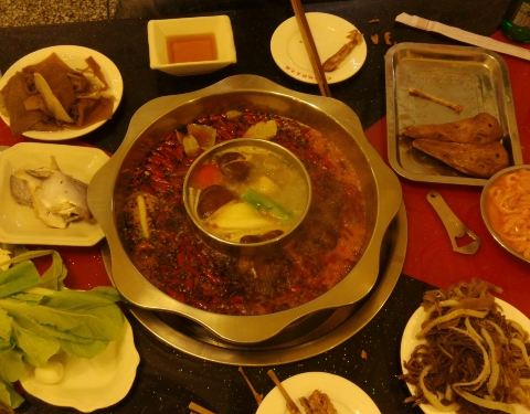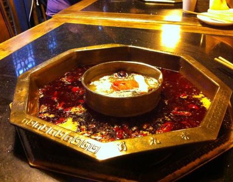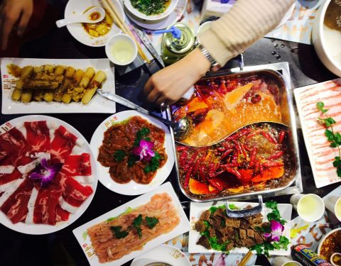 吃成都火锅的感受就是又爱又恨。爱是爱成都火锅的麻辣香,恨是恨成都火锅辣得人鼻涕一把,泪一把。和南京火锅不同,成都火锅的筷子是超长的,更加方便食客们捞。火锅门口常有大量食客边排队,边悠闲地嗑瓜子。