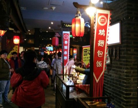 剧场门口就是春熙坊·唐宋美食街,整条街上都是成都小吃,装潢也很有中国风情,也值得顺便逛一下。