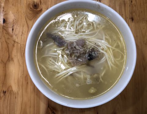 鸡肉细腻滑爽味道很鲜美,汤色雪白好喝,面条筋斗好吃。