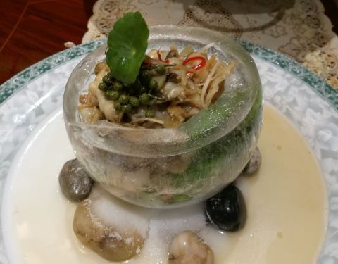 大厅里拍了个自助餐厅远景,我们在楼上房间里吃的,口味和其它餐厅一样,这个冰火菜品精致