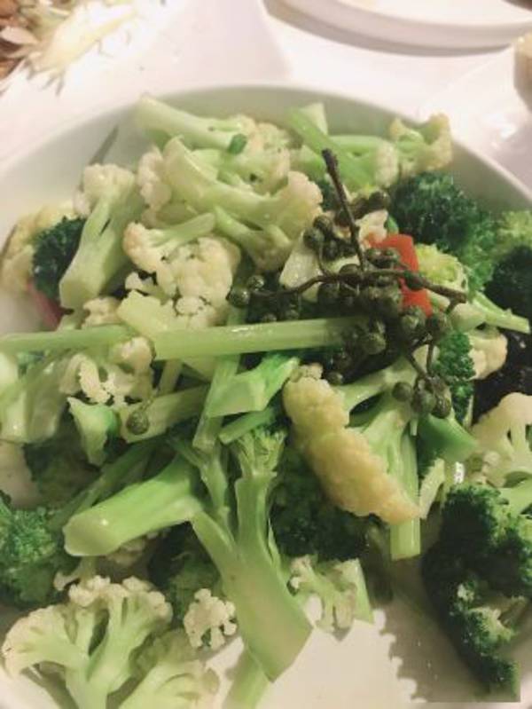 逛了好久逛累了,也正好是晚餐时间,不觉有点饿了,正好初中同学在附近写字楼上班,索性约了个饭局,吃吃饭聊聊天。看了下大众点评上平分比较高的餐厅是鲁菜闫府私房菜,我和同学都是济南土著,今晚就在他家吃啦~我们两个人点了爆炒腰花、糖醋鲤鱼、京酱肉丝、老济南油旋、三吃鸡腰、豆扣小白菜还有解腻的干锅西蓝花。