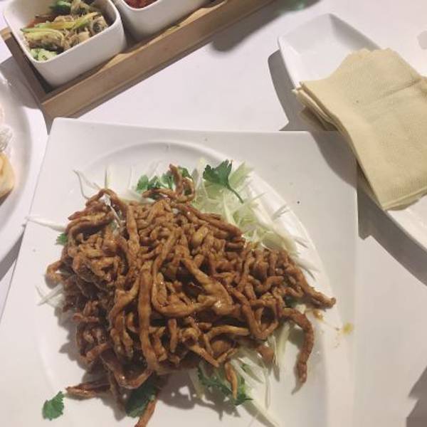 京酱肉丝:哈哈,这道也是从小就爱到大的菜,最近猪肉价格疯涨,他们家的用料还是很足的,菜品价格也控制的比较合理,用豆腐皮卷上浓浓酱香的肉丝,那叫一个爽。