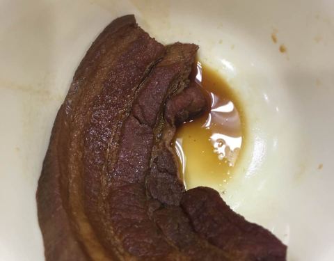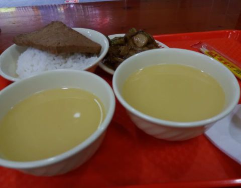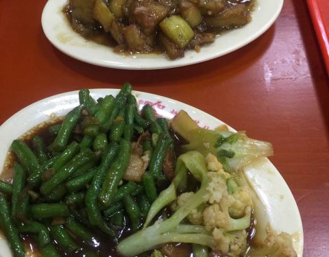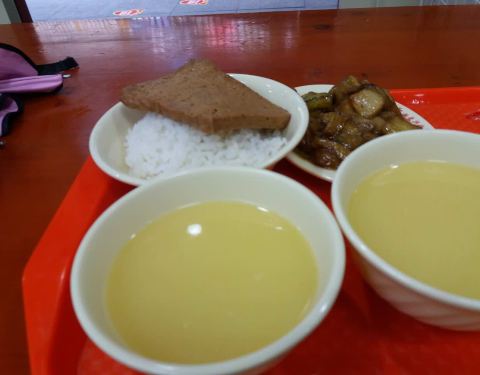 把子肉入口即化,很好吃,菜略微咸点,今天没海带了,海带也很好吃。