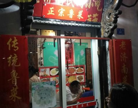芙蓉街中的鲁菜小馆。味道不错,价格也不贵,大部分都是平价菜20元左右,某些特色菜如九转大肠稍贵点要50多。店很小,挺有老山东古典风格。卫生及桌椅环境一般,但冷气挺足。山东煎饼卷大葱不错,8元1份,辣炒花...