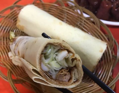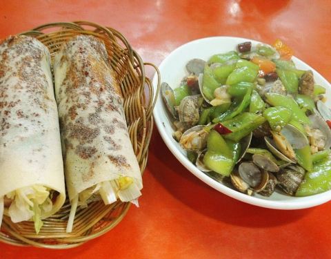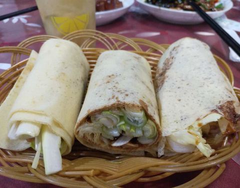 - 山东煎饼卷大葱不错,8元1份,辣炒花蛤也好吃,才18元一盘。店很小,挺有老山东古典风格