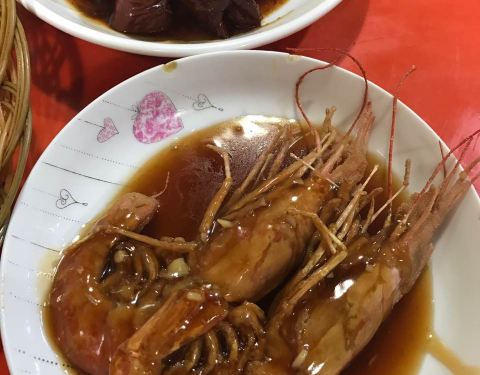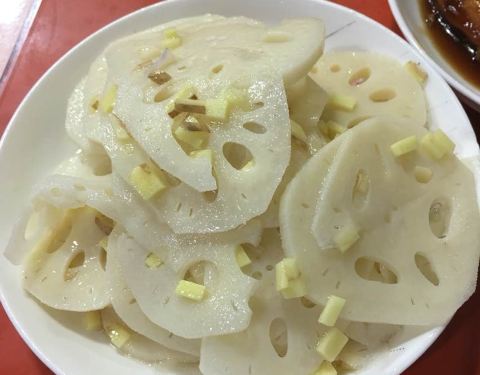 这家店的糖醋大虾和姜拌莲藕很不错哦!