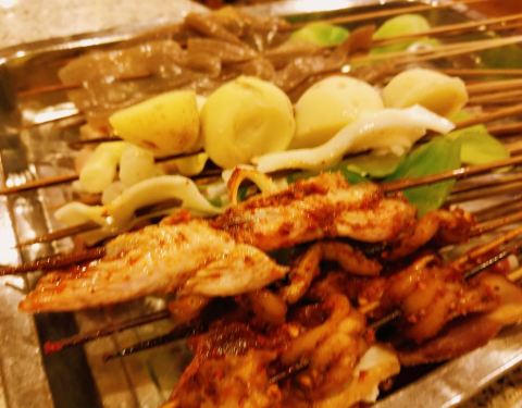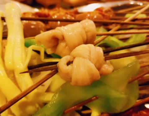 到店的时候是晚上8点多,人多的要排队。但是翻台很快,没等两分钟就进去了。小串1元一根签,菜品都很新鲜,品种也很丰富。店很大,