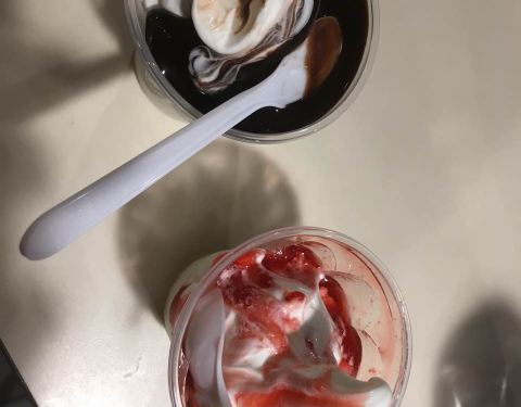 - 这次不为汉堡而来,三个人点了三杯冰淇淋,太热来杯冰淇淋,真是享受