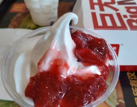 楼下就是麦当劳,一般中午都会去买个汉堡之类的,特别是巨无霸现在做活动,仅售十元一个。这次不为汉堡而来,三个人点了三杯冰淇淋,太热来杯冰淇淋,真是享受。