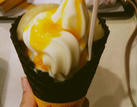 去的是饭店人很多,吴亦凡代言,不得不说颜值真的挺高,那么大甜筒个人觉得菠萝味好吃,抹茶有点苦,赞一个…