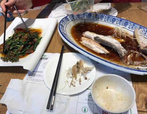 - ...得说,大馒头绝对没见过这么大的,味道也棒棒哒,环境蛮有意思,处处体现鱼的文化,同事们都超级喜欢
