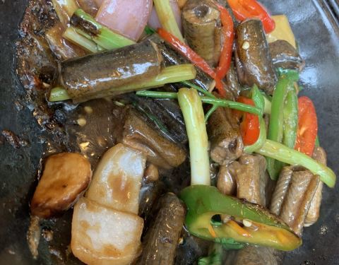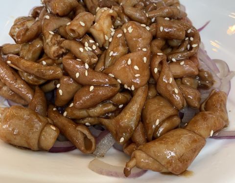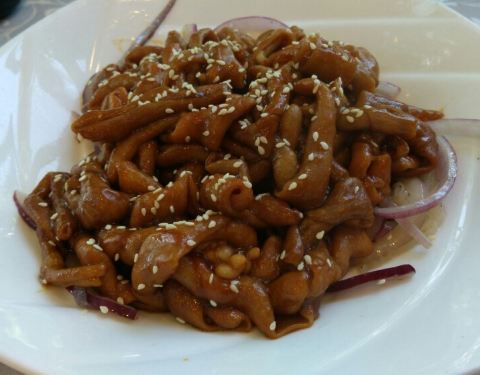 - 鵝腸分量還是滿足的只是太咸了,吃著吃著必須用茶水洗洗才能入口,芥蘭炒牛肉滿滿都是姜,唉都搞不清...