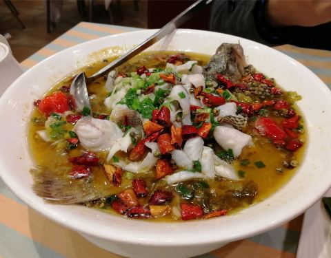 是广州的老字号餐厅,很小的时候就听说,但过了这么多年才有机会吃上。现在已经新装修,分了两边区域,好像都有两层,餐位挺多,还可以接待宴会活动。豉油皇鹅肠是这里的招牌,份量足,很爽口,不过做法偏清淡,吃惯卤水鹅肠的可能会觉得口味不过瘾。酸菜鱼的肉质是好,但做法普通,不出彩。作为知名粤菜餐馆,总体出品还是挺有水准,价格较普通酒家稍贵,性价比中等吧。