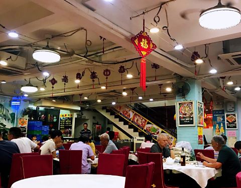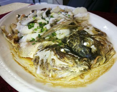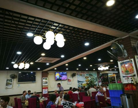 罗非鱼是起了片,非常新鲜,又嫩又滑。 这是一家老字号的大排档,有两层,环境简陋,比较嘈杂