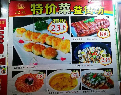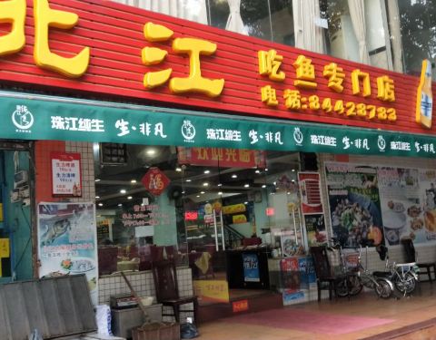 北江食府(江南大道店)位于江南大道南435号,晚上和朋友经过,进去随便吃吃。 这是一家大排档,有两层,装修简陋,桌椅摆得比较密集,人声鼎沸。 他家主要是吃鱼的,有多款148元一鱼三吃的菜品,还有不少特价菜...